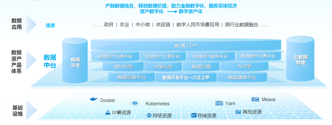 神州信息“六合上甲”一体化数据开发平台是一站式的智能大数据全生命周期研发平台,可实现对数据的采集、开发、治理、分享、可视化等复杂组合场景的应用能力,实现数据向数据资产的转化。具有能够打破数据孤岛,形成对数据的闭环管理;有效降低数据建设成本,提高数据治理效率;充分激活数据商业价值,赋能金融机构运营与决策;升级金融机构数据架构,改善开发流程等优势。